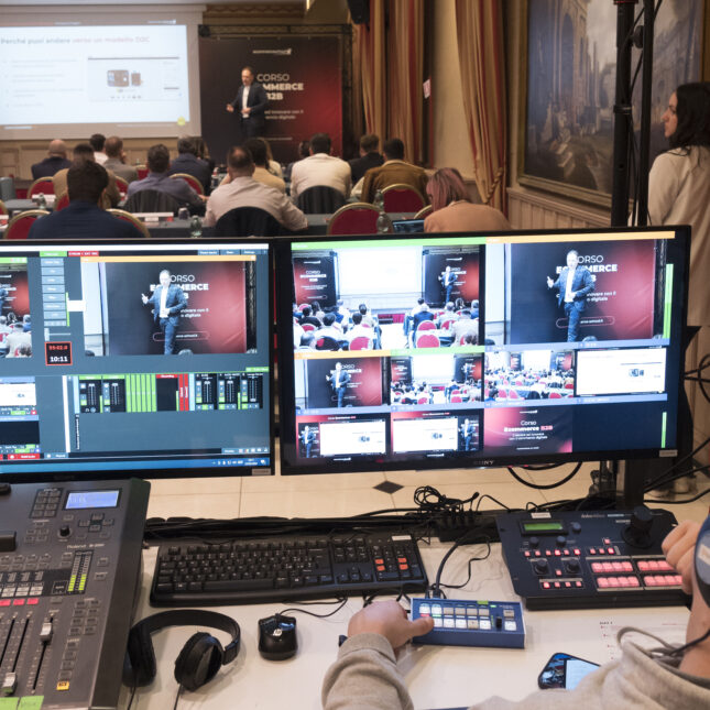 Durante le due giornate di corso, abbiamo realizzato una copertura video completa utilizzando tre telecamere di alta qualità. Una di queste era dedicata esclusivamente al relatore, permettendo di catturare ogni dettaglio delle sue presentazioni e interazioni. Un’altra telecamera era impostata con un’angolazione più ampia, consentendo di riprendere l’intera sala e il palco, fornendo così una visione d’insieme dell’ambiente e delle dinamiche in corso. Tutte le riprese sono state effettuate in Full HD, garantendo una qualità visiva eccellente.