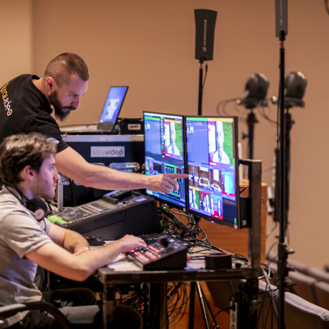 Durante l’intero evento, il team Stravideo ha svolto un ruolo fondamentale, coordinandosi tra lo studio, telecamere e regia per garantire un’esperienza di altissima qualità. Considerando anche la presenza di relatori collegati da remoto, è stata prestata particolare attenzione anche alla gestione delle grafiche, contenuti e al cambio di telecamera tra la sala fisica e le connessioni online.